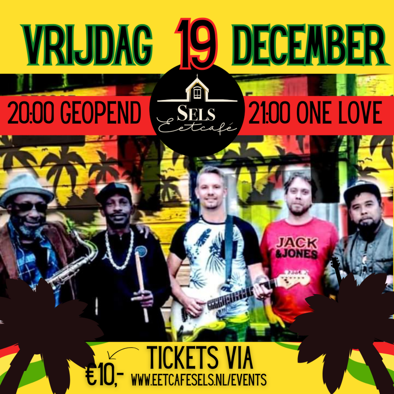 Verwacht op deze muzikale avond echte Reggae klassiekers zoals de liedjes van Bob Marley, maar ook andere grote hits die deze band verpakt heeft in een Reggae jasje zoals Hotel California van The Eagles.